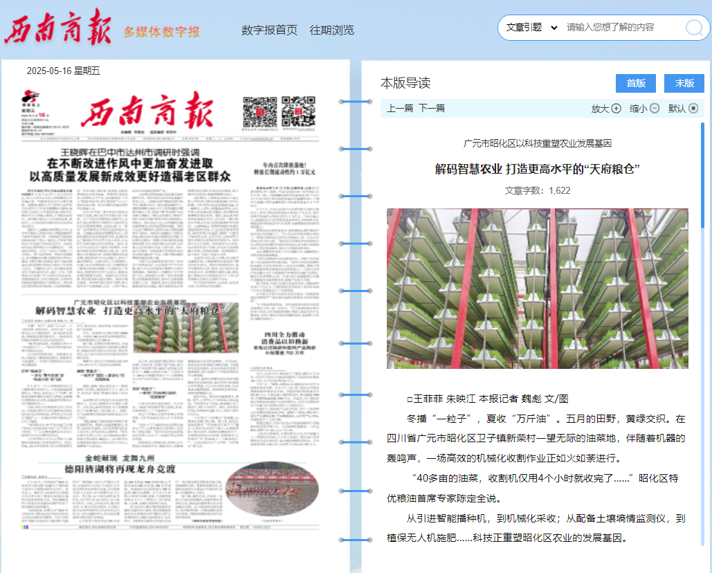 2025年5月16日【西南商报(头版)】广元市昭化区以科技重塑农业发展基因 解码智慧农业 打造更高水平的“天府粮仓”