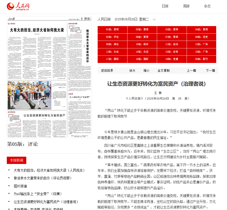 2025年8月26日【人民日报】让生态资源更好转化为富民资产(治理者说)
