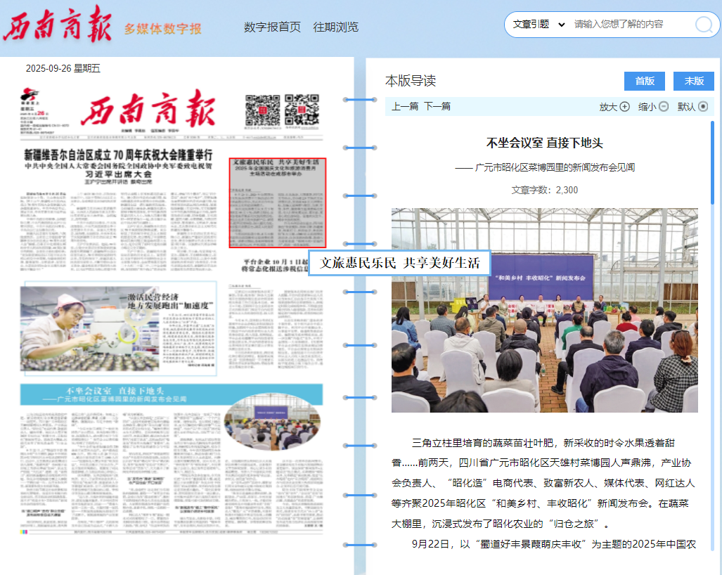 2025年9月26日【西南商报(头版)】不坐会议室 直接下地头—— 广元市昭化区菜博园里的新闻发布会见闻