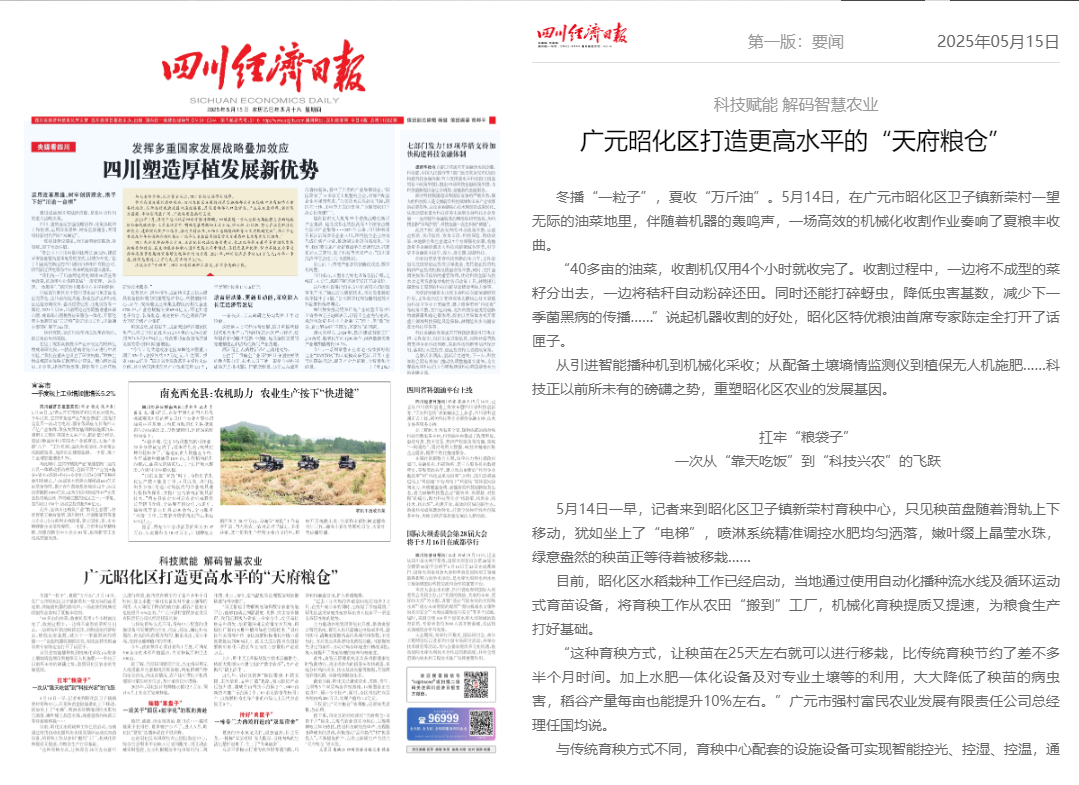 2025年5月15日【四川经济日报(头版)】科技赋能 解码智慧农业 广元昭化区打造更高水平的“天府粮仓”