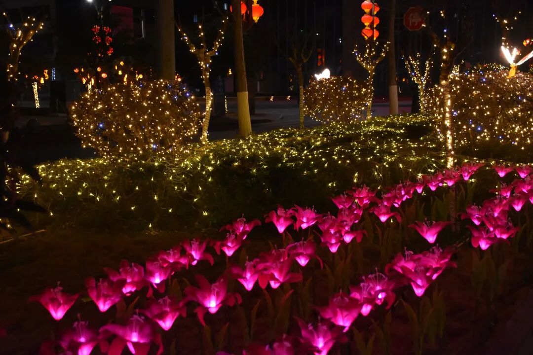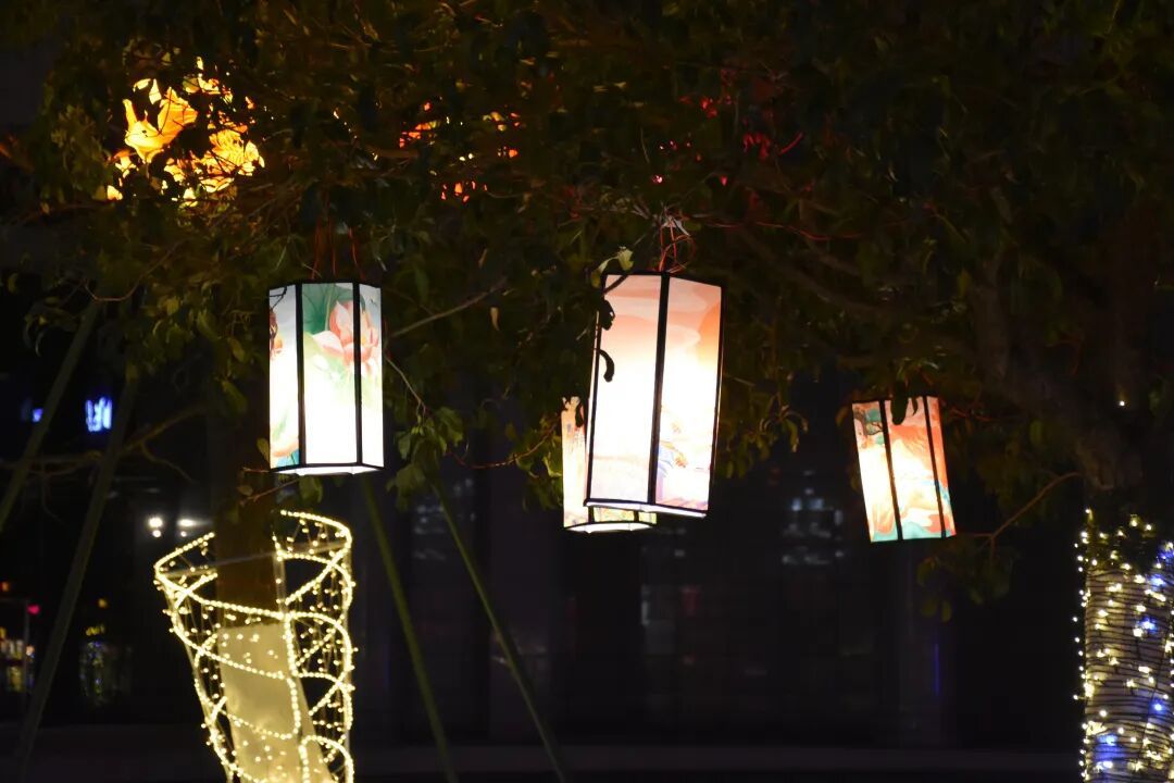 广场上不时有市民驻足欣赏这灯火辉煌,灯光映亮了他们的笑脸,温暖了晚归的路途。