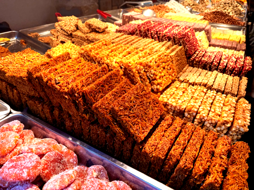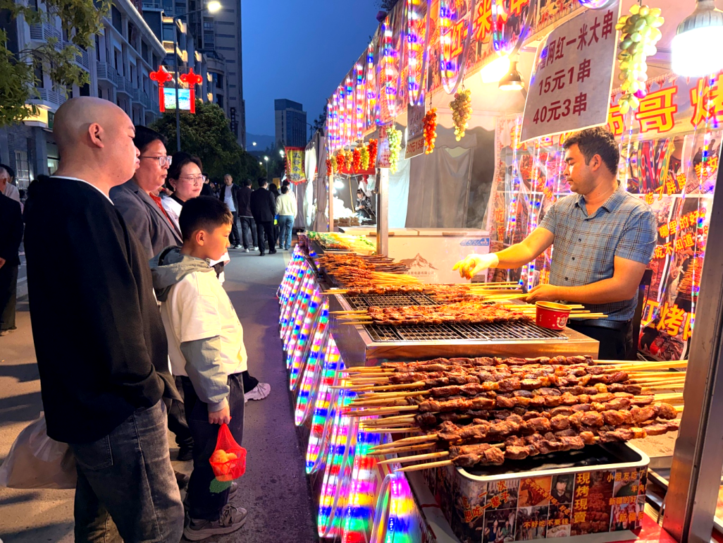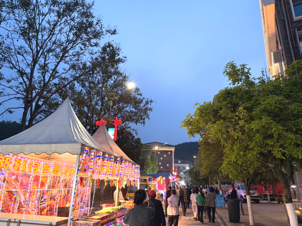 走进集市现场,浓郁的烟火气扑面而来。琳琅满目的昭化本地特产整齐陈列,新鲜水果、特色腊味、手工干货等好物琳琅满目,每一件都承载着本土风味;美食区更是香气扑鼻,外酥里嫩的章鱼小丸子、滋滋冒油的羊肉串、健康养生的五谷杂粮、香酥可口的麻花、地道农家火烧馍、香甜酥脆的米花糖……各色小吃应有尽有,摊主们热情招呼,食客们驻足品尝。