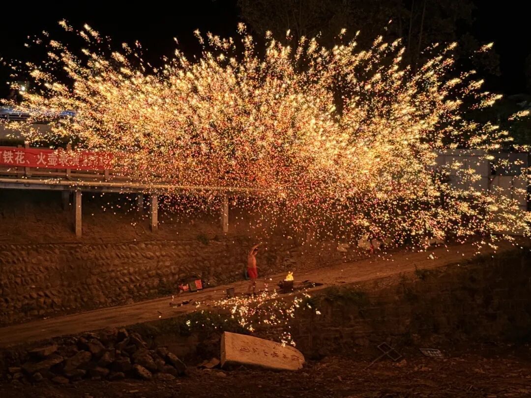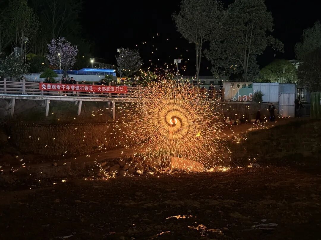 夜幕降临,集市迎来高光时刻!非遗打铁花震撼登场,铁水腾空化作漫天星火,流光溢彩、璀璨夺目,在夜空勾勒出绝美画卷;火壶、吐火等表演轮番上阵,惊险刺激的技艺引得现场观众阵阵惊呼、掌声连连,大家纷纷驻足围观,感受非遗文化的独特魅力。