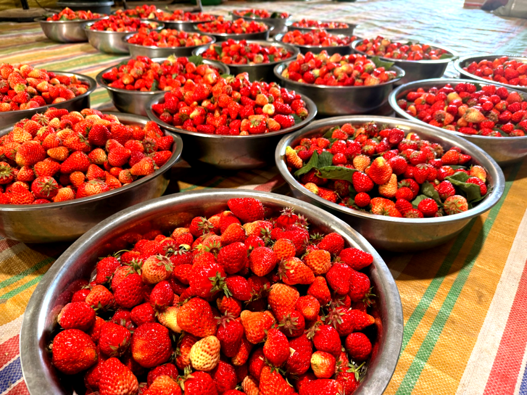 “天雄村空气清新、环境宜人,特别适合一家人前来游玩体验。这次草莓采摘的体验非常好,既感受到了乡村烟火气,又能品尝到新鲜香甜的草莓,让人身心舒畅。”游客李又又笑着说。