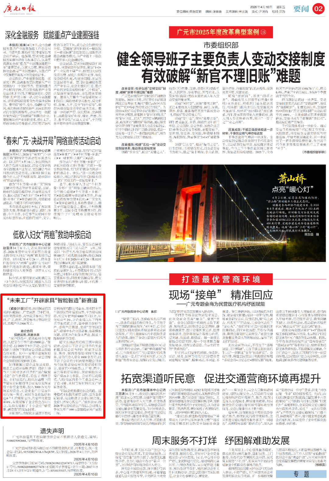 《广元日报》头版头条报道