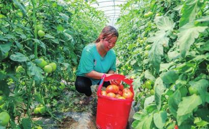 天雄村村民正在采收西红柿。
