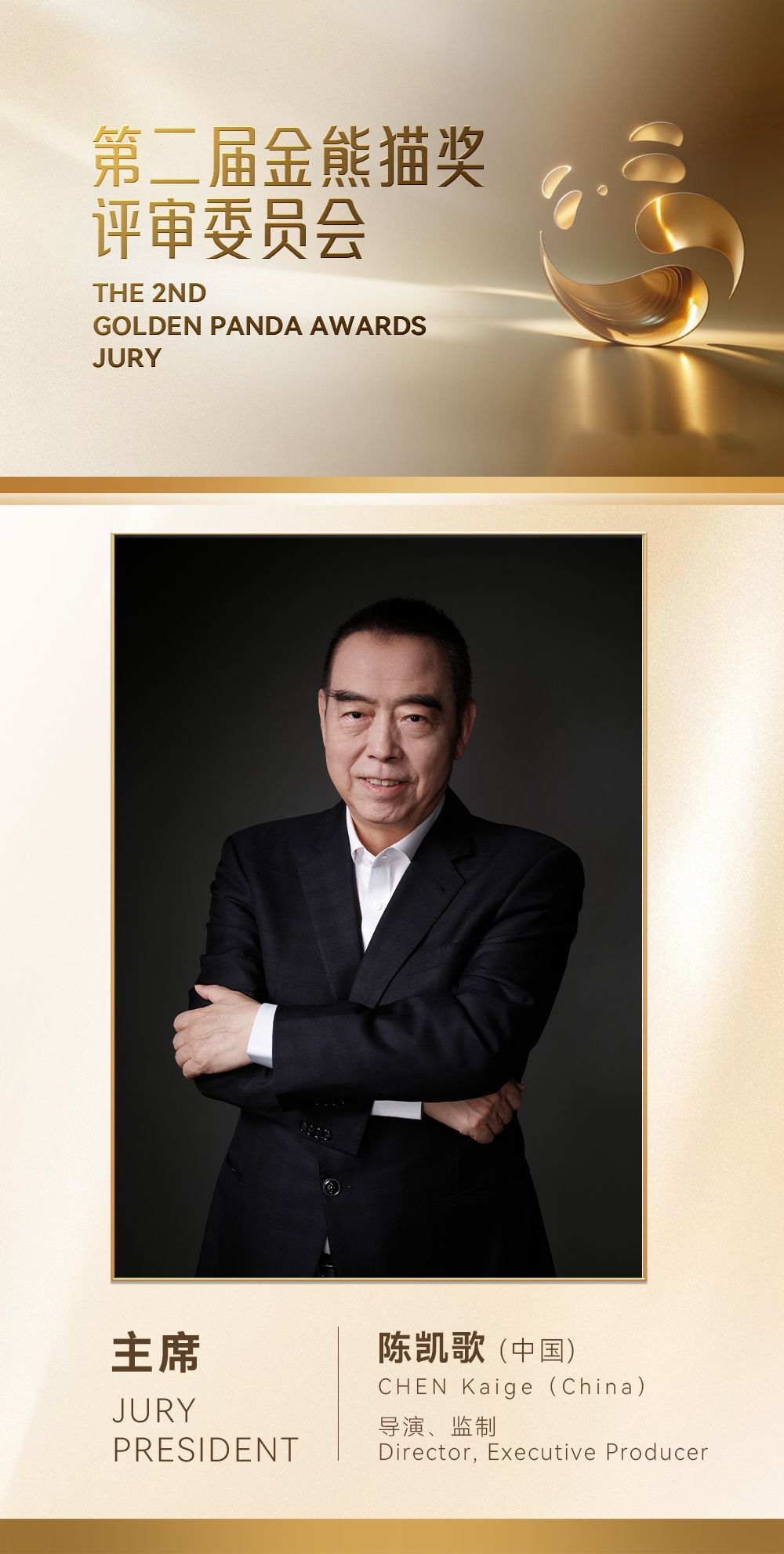 8月22日,第二届金熊猫奖新闻发布会在北京国际会议中心举行。发布会上,第二届金熊猫奖活动组委会办公室副主任、执委会办公室主任、四川省委宣传部常务副部长高中伟正式宣布,中国著名导演陈凯歌将担任本届金熊猫奖评委会主席。