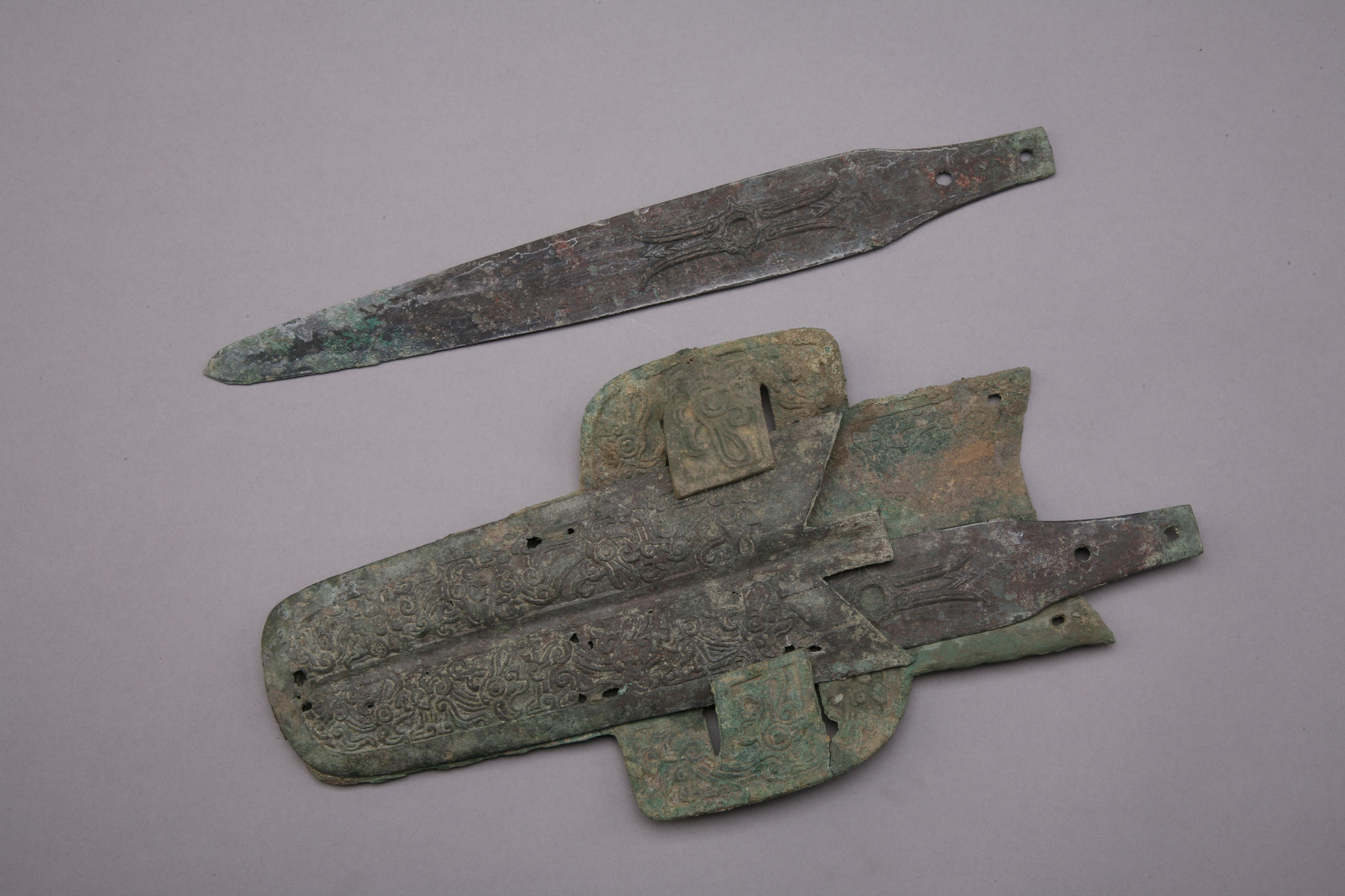 铜带鞘双剑。