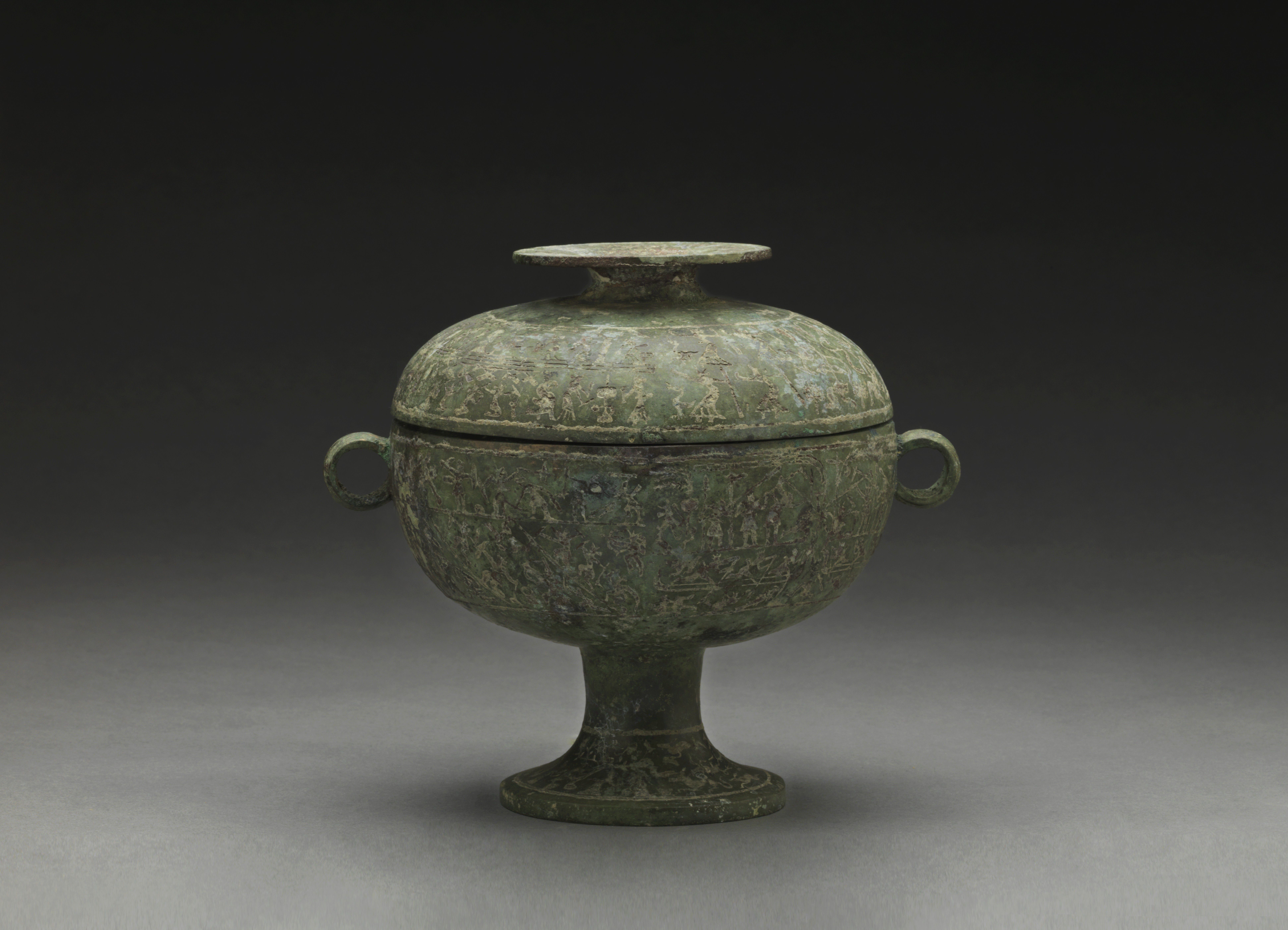 嵌错水陆攻战纹铜豆。