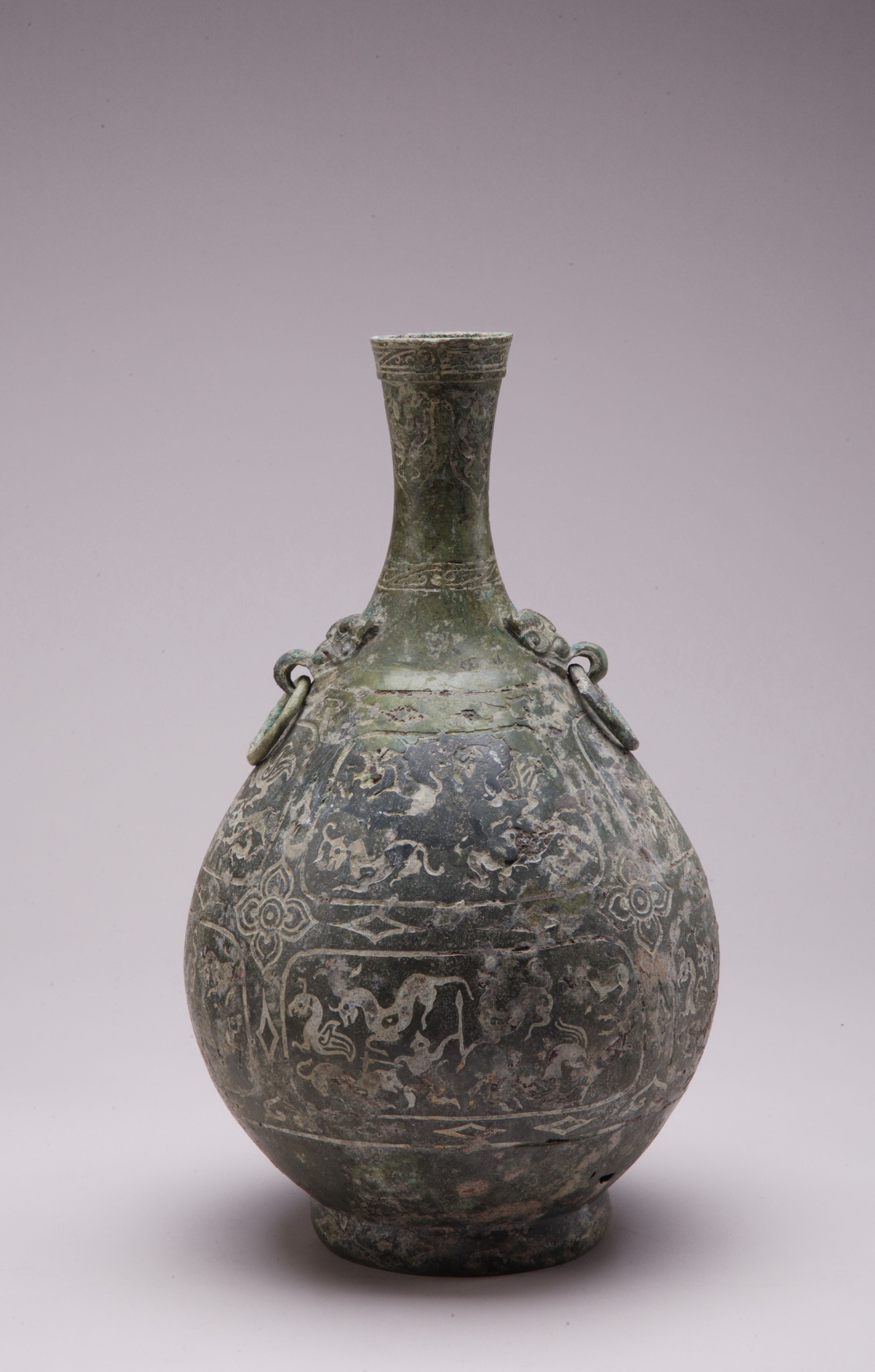 嵌错狩猎纹铜壶。