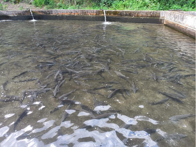 从2022年开始,大茶园村采用“村集体经济+农户入股”的发展模式,通过村集体牵头,组织农户入股参与,创新发展冷水鲟鱼、青海裸鲤养殖产业。鲟鱼养殖离不开优质和清洁的水源,当地因地制宜利用优质溶洞水资源,将原本闲置的5个鱼池变成了“聚宝盆”,不仅实现了村集体经济增收,还带动了广大群众就近务工。