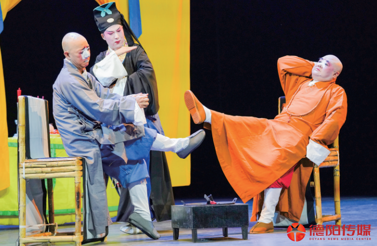 锣鼓一响,粉墨登场,水袖轻舞,飘逸如画。8月25日晚,德阳市艺术宫响起阵阵热烈掌声,时而激越时而婉转的川剧高腔,让台下的川剧迷们如痴如醉。两位梅花奖得主肖德美(本名肖得美)、虞佳扮相俊美,唱念做打,功底深厚;德阳本土川剧演员生旦净末丑悉数上场,表现亮眼;音乐、唱腔、舞台布景皆让人耳目一新。