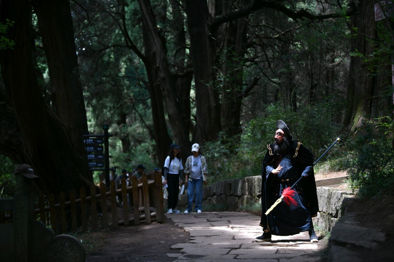 传统景区纷纷推出新体验 图为翠云廊内巡游的“张飞” 华小峰摄