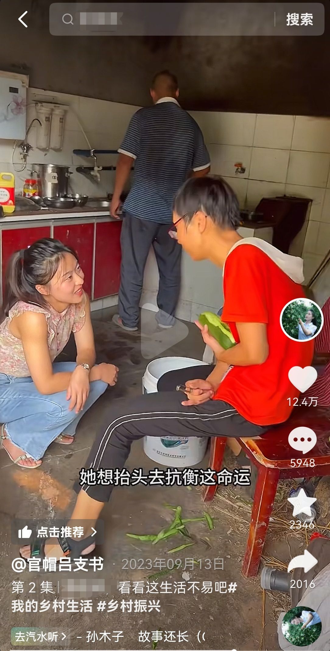 “90后”吕凤丽大学毕业后一直在城里上班,2020年回村担任党支部书记,为了帮助村民销售农副产品,2022年她注册了抖音账号,取名“官帽吕支书”,迈开了成为短视频博主的第一步。一开始抖音账号粉丝寥寥,但吕凤丽坚持发,几个月后,她的账号迎来了关注热潮,如今已有粉丝56.7万,累计获赞705.4万次。