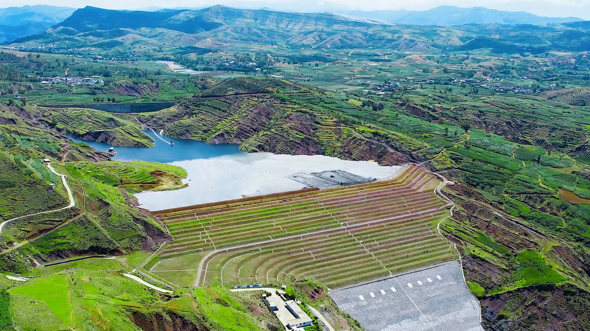 雨季的绿房箐沟尾矿库局部俯瞰图。凉山州生态环境局供图