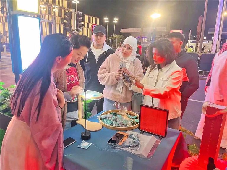 2024年,时逢卡塔尔亚洲杯,黄海彦带着观音绣产品到了当地待了10天。“卖了很多产品。”她笑着说,当地民众对绣品的喜爱超乎她的想象。