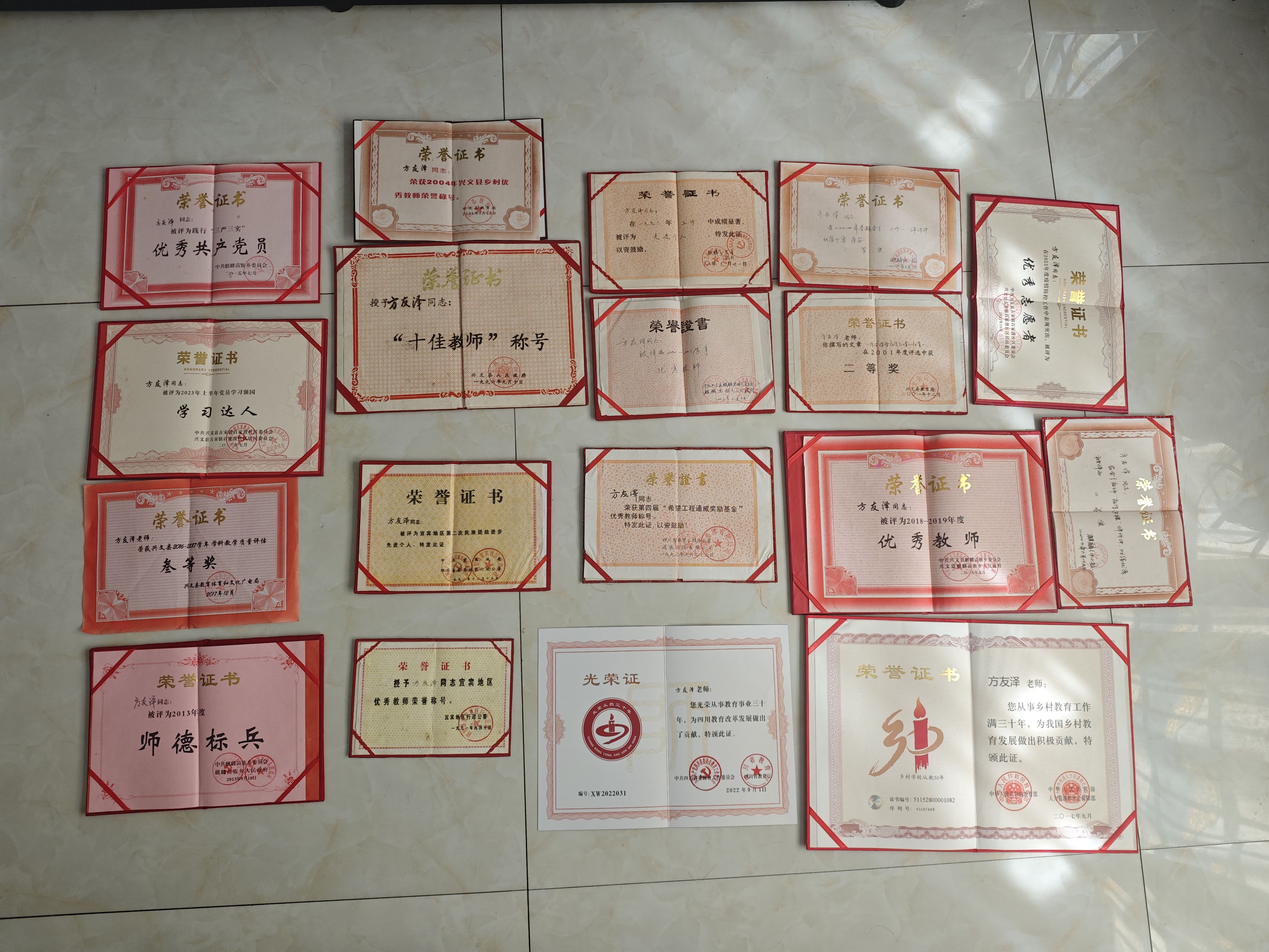 方友泽曾获得的荣誉证书(图据受访者)