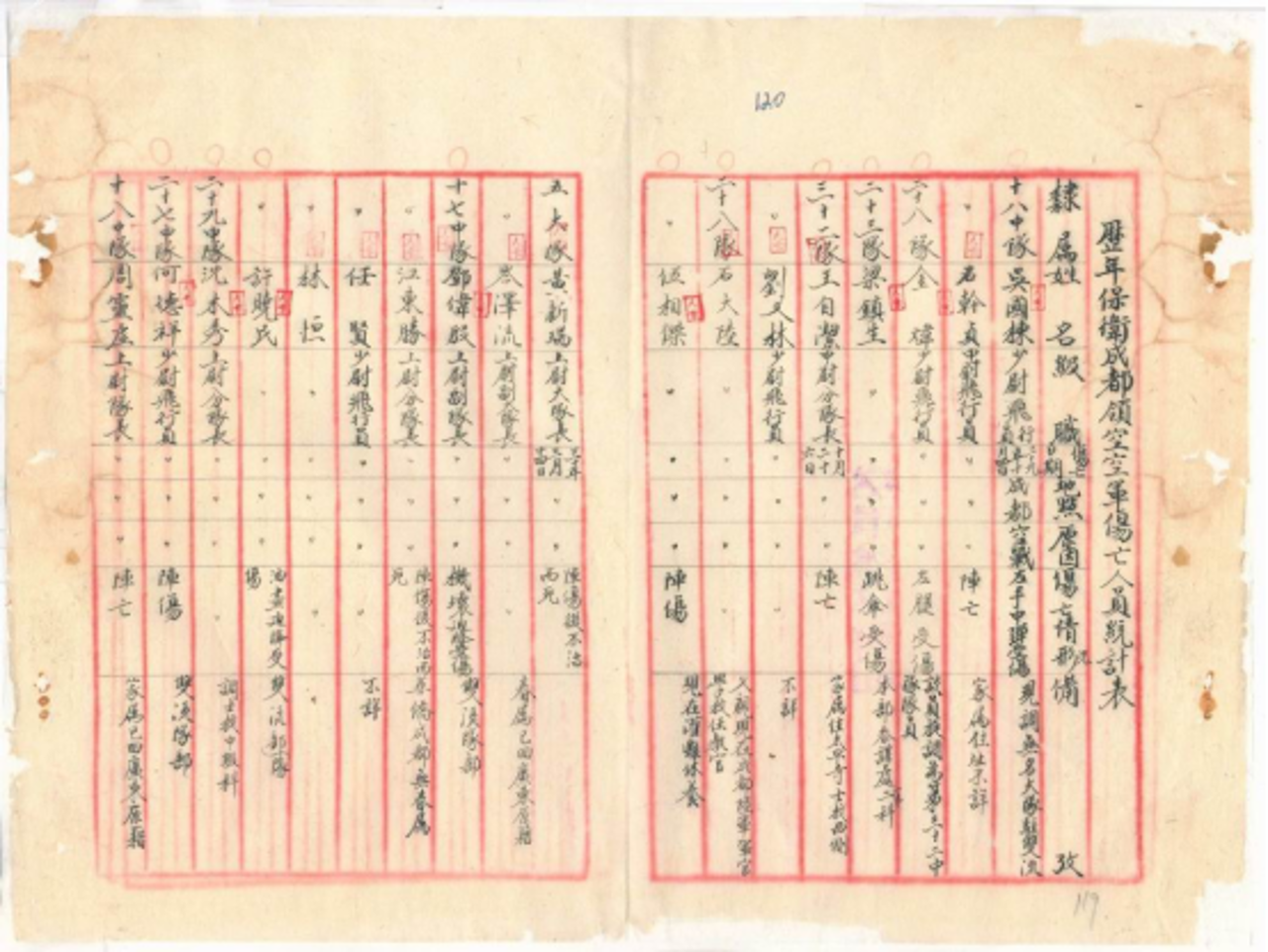 图为保卫成都领空空军伤亡人员统计表(四川省档案馆 供图)