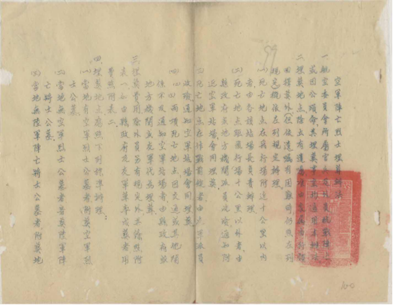 图为《空军阵亡烈士埋葬办法》(省档案馆提供)