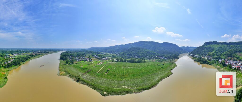 四川省自贡市富顺县琵琶镇艾家村,三面环水,一面临山,有着别具一格的村庄布局。