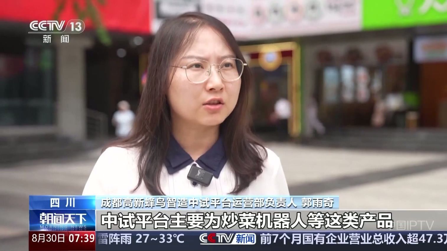 成都高新蜂鸟智造中试平台运营部负责人 郭雨奇:中试平台主要为炒菜机器人等这类产品提供设计验证,可靠性测试以及小批量生产等服务支撑。一方面也是进一步降低创新产品的研发成本和生产成本,降低早期的研发风险。另外一方面,也是通过我们的专业服务加速产品的性能迭代。
