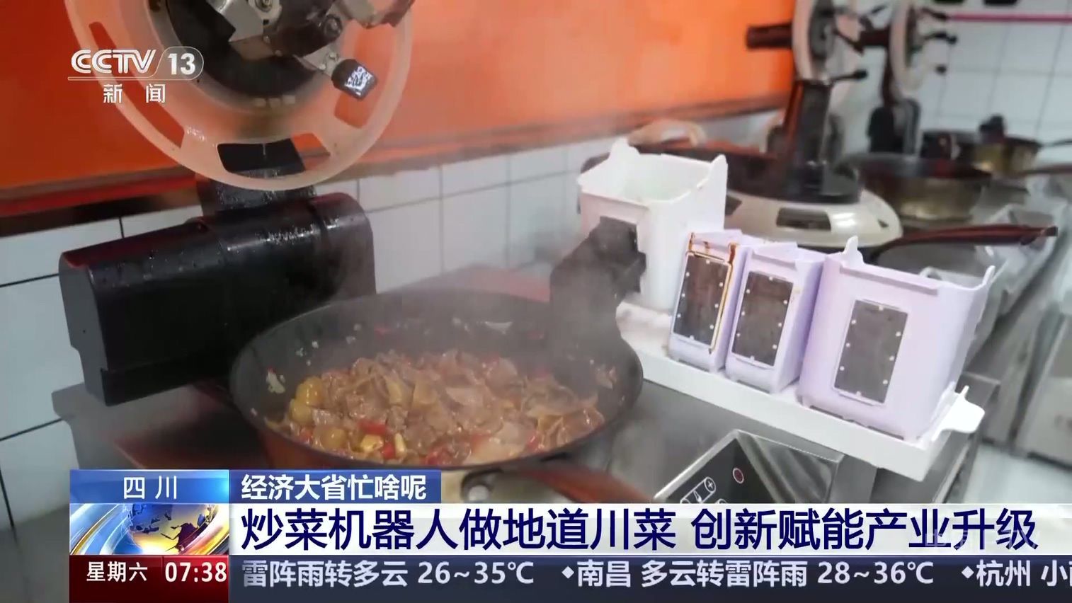 飘香的麻婆豆腐,让人垂涎欲滴的辣子鸡,不过仔细一看,掌勺的却不是大厨,而是几台炒菜机器人。在成都天府三街,这家川菜馆正在演绎“舌尖上的升级”。在小程序上选中菜品、点击确认,智能炒菜机器人就能自动完成取料、翻炒、调味,不到5分钟,一道道热气腾腾的川味小炒便新鲜出锅。