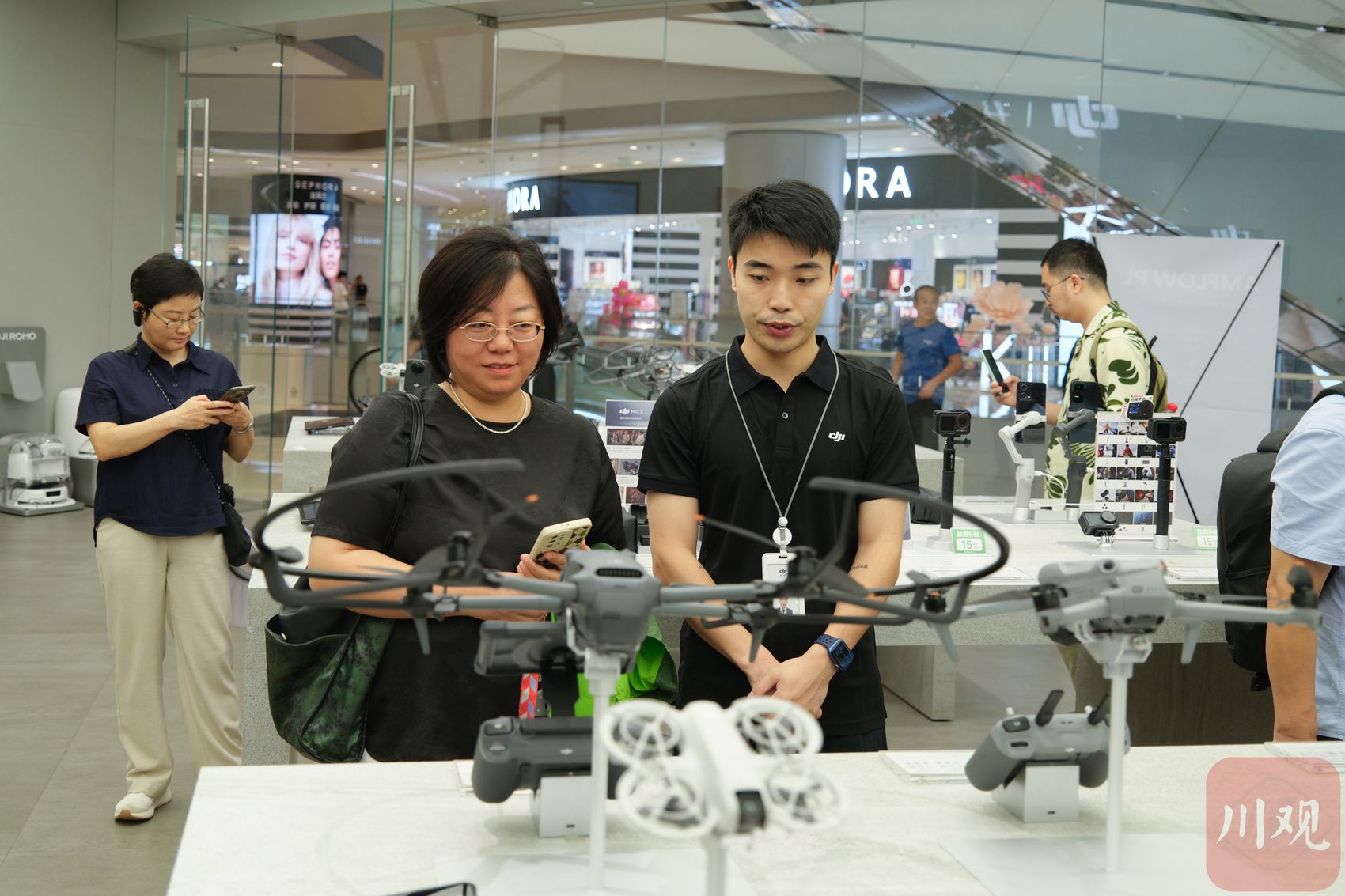 记者们在位于成都IFS的首店—大疆|哈苏概念店参观。郝飞 摄