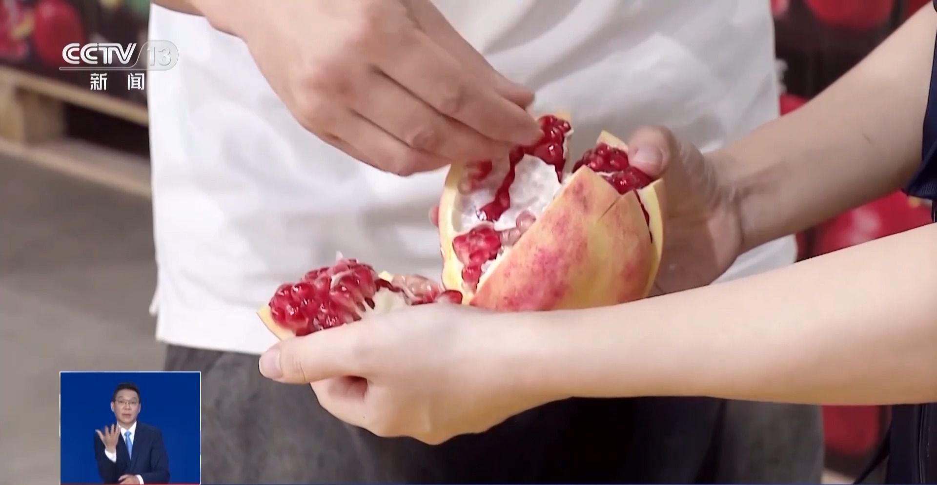 水果出口海外拓展专员 段天雄:从石榴海外贸易的跑单、跟单,到备案材料的提交、复审、清堵点,我们全程都跟着跑,一句话就是让石榴顺顺利利“走出去”。