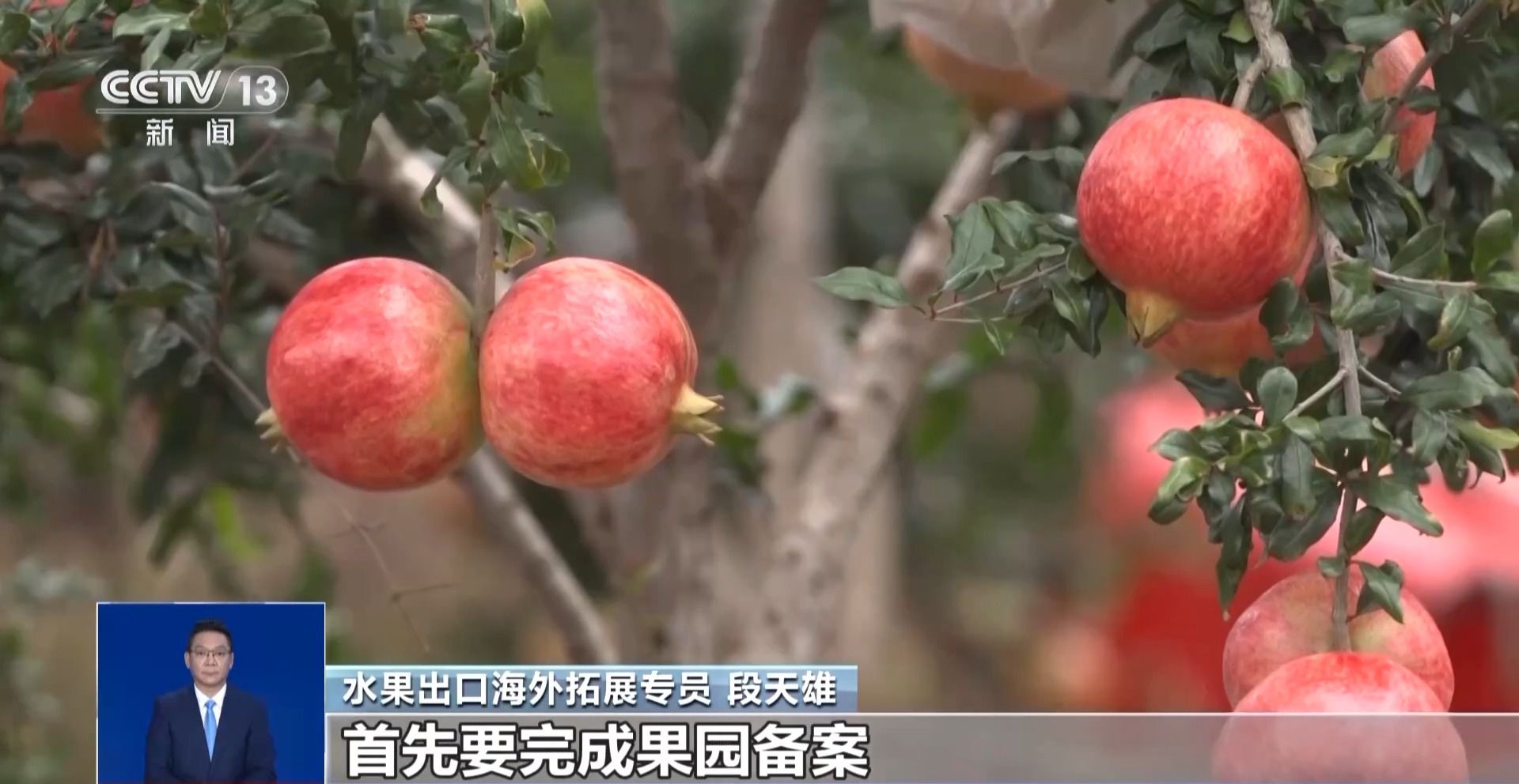水果出口海外拓展专员 段天雄:跨境水果贸易已经成为当前极具潜力的创业赛道。我们的工作就是一站式解决果农基地种植、出口通关等相关配套服务。石榴如何出口海外去呢,首先要完成果园备案。