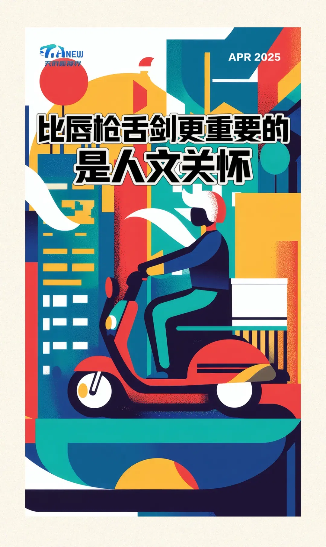 比理念之变更实际的是行动之变。值得警惕的是,以新的内卷解决过去的内卷。比如,新玩家对客户宣称“超时免费”,但实际对骑手而言,罚款可能也更严厉了。“口水战”只是开始。推动行动改变,就要从实践出发,到实践中去。4月25日,饿了么平台与骑手代表签署《2025年度“饿了么”(上海)网约配送算法和劳动规则协议》,这份全国首份围绕平台算法与劳动者权益达成的专项协议,是在一场由骑手代表和平台、社区多方协商恳谈后达成的。通过这一协议,算法有望不再“一刀切”。尽管协议作用有待观察,但至少这种把矛盾主体聚在一起协商的机制,值得推广。