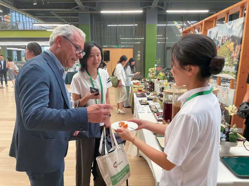 企业交流对接期间,德国与会嘉宾品尝四川当地特色美食。