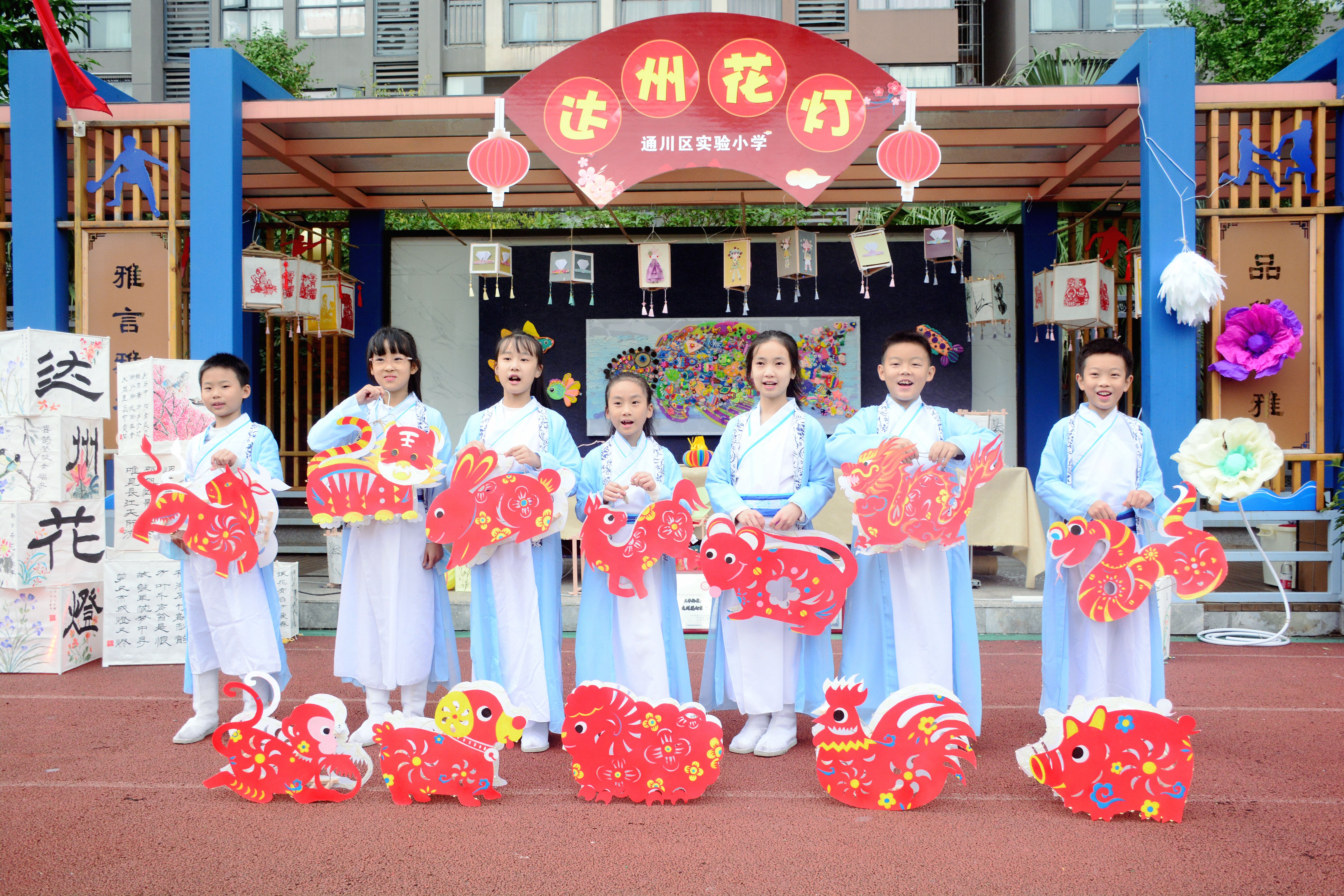 通川区实验小学带着花灯参加活动。