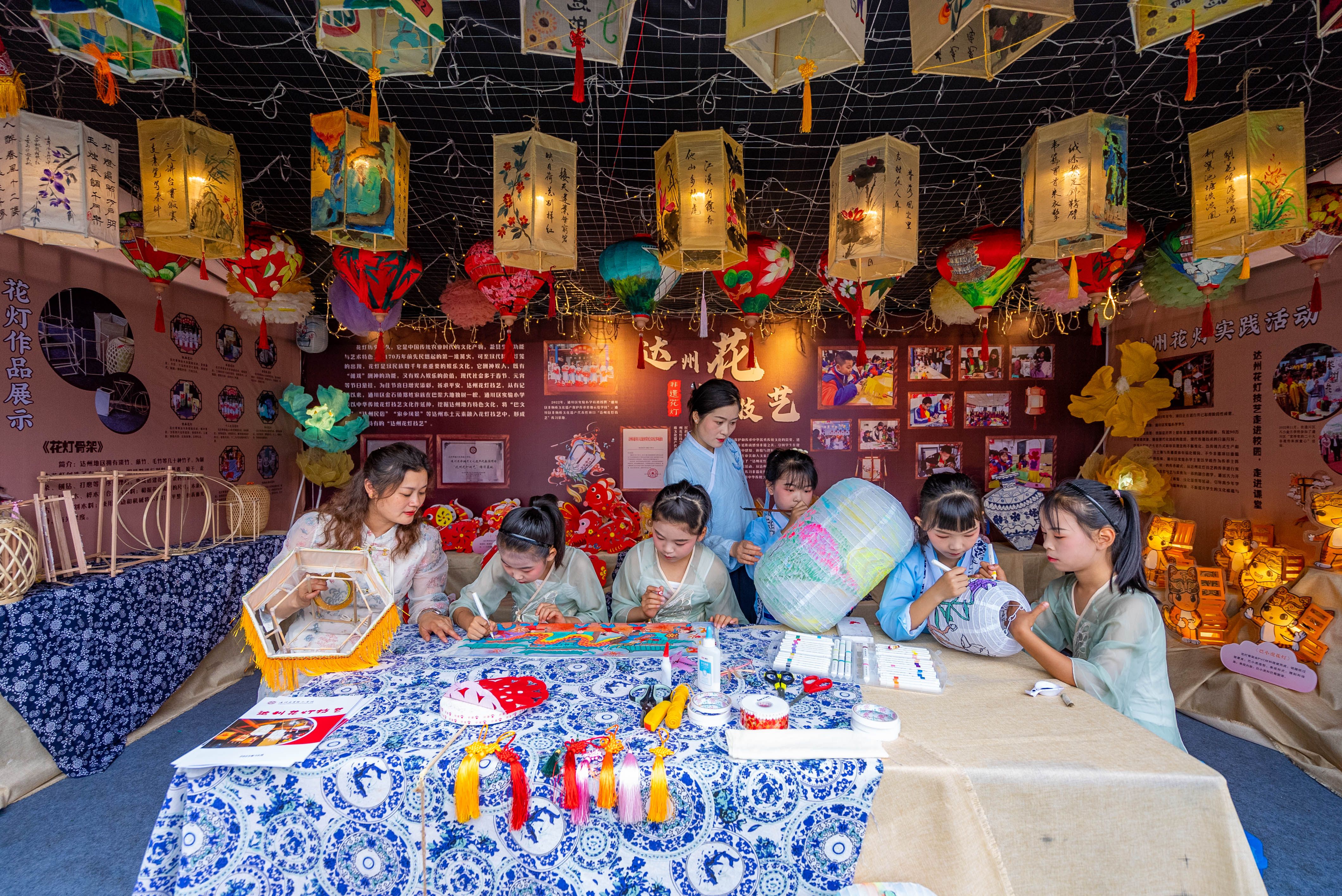 孩子们在花灯制作课堂上创作。