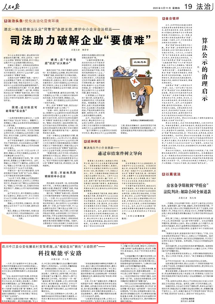 “我们正在加快本地数据库建设,同时联合科技企业优化算法模型,努力形成‘违法预警+核实查处+宣传教育’一体化长效治理格局。”中江县公安局副局长黄东介绍,通过深化数据融合运用,可以精准有效拦截检查重点车辆,及时查处机动车逾期未审验、驾驶证失效等违法行为,更好保障农村道路交通安全。