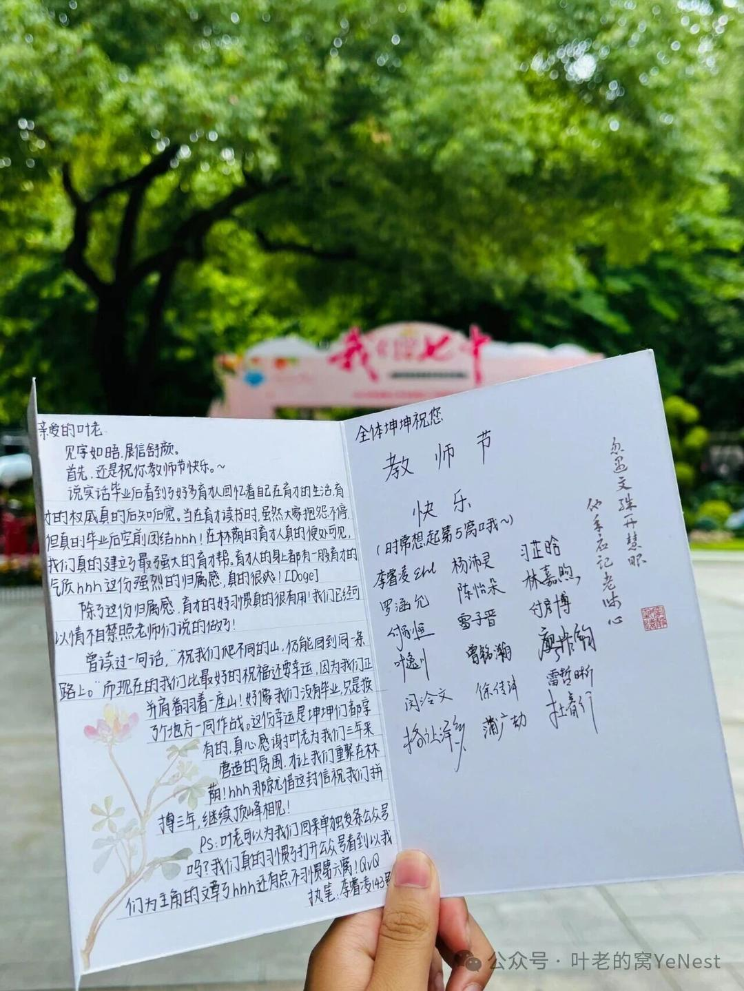这并不是什么暗语,而是叶德元9月9日刚刚收到的教师节贺卡里的祝福。“第5窝”是他在七中育才担任班主任的第5届学生,“坤坤”则是“第5窝”的吉祥物,也是孩子们的昵称。