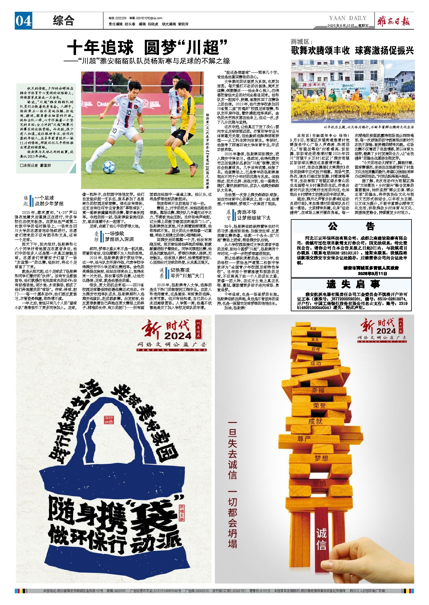 如今,杨斯寒依然保持着学生时代的习惯:提前到场地、加练定位球、反复观看比赛录像。他就一个念头:在“川超”赛场上进球,帮助雅安队出线。
