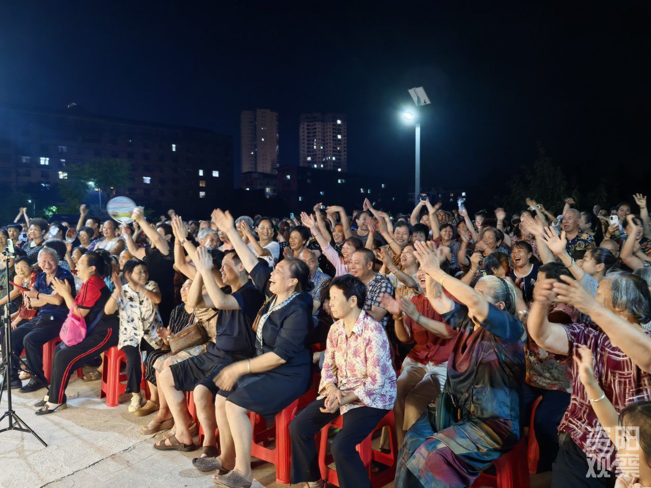 紧接着,居民杨选芝带来《母亲》,熟悉的旋律引发全场共鸣。台下,观众们纷纷打开手机手电筒,微光汇聚,宛如银河洒落人间。