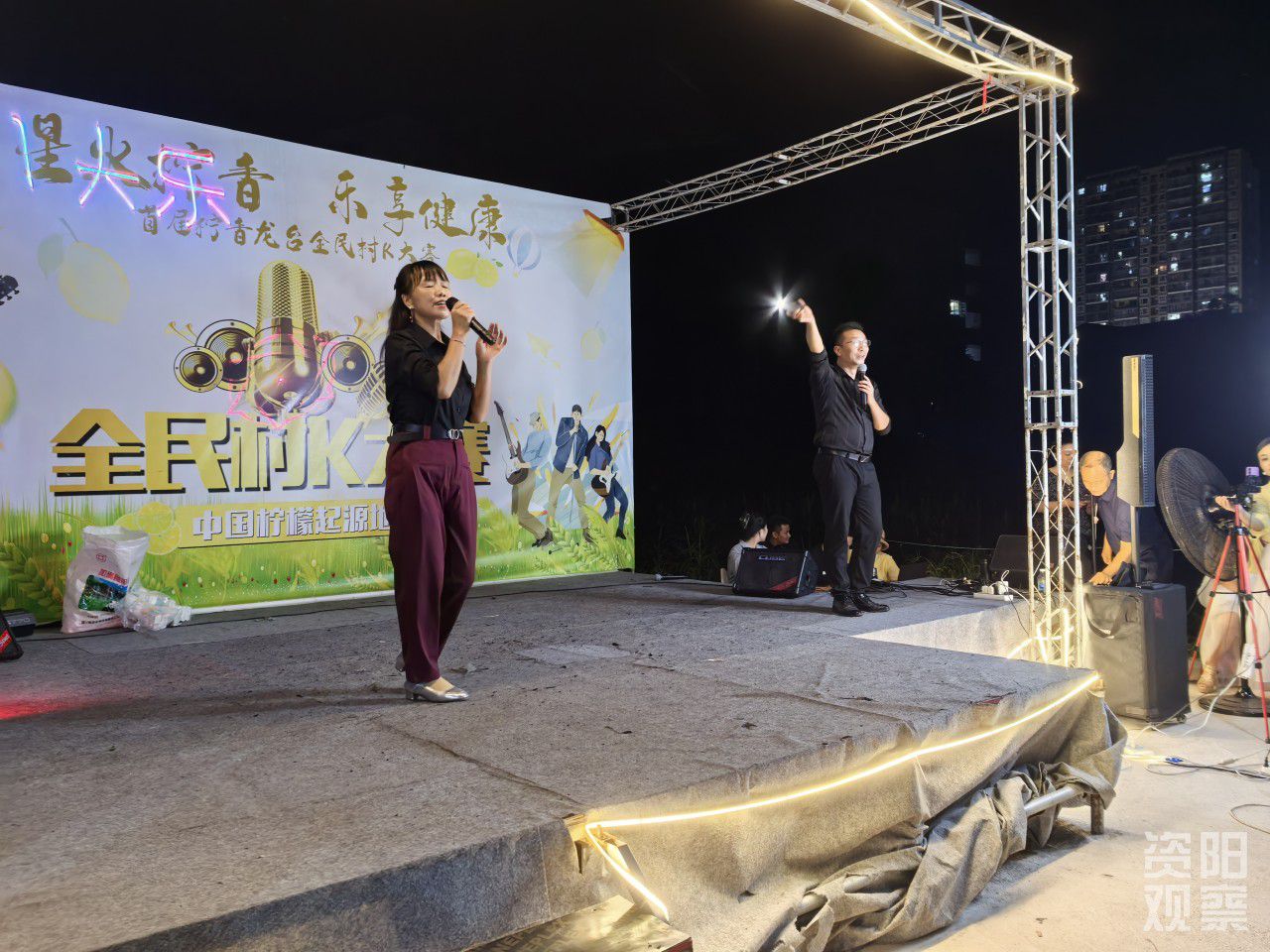 台上,村民握麦高歌;台下,观众挥手跟唱。每当夜幕降临,资阳市安岳县龙台镇滨河路体育公园便会热闹非凡。音乐小广场上,聚光灯照亮舞台,歌声响起,一场充满烟火气的“村K”活动正式拉开帷幕。这里没有明星大腕,只有乡亲父老;没有分毫票价,只有自由的歌声和发自内心的笑声。