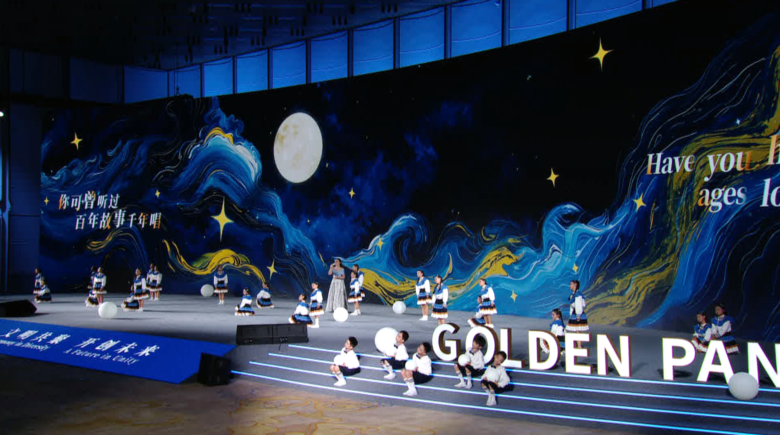 9月13日上午,2025金熊猫国际文化论坛在成都举行。文化展演中,希腊歌手埃里尼、大凉山妞妞合唱团、金熊猫少儿艺术团联袂演绎歌曲《玉盘》。这首四川创作、响彻春晚、飞向全球的歌曲,在金熊猫国际文化论坛的现场完成了首次中外合作演出,以传统与现代、东方与西方的艺术碰撞,生动诠释“文明对话”的深刻内涵,呈现跨越国界的艺术共鸣。