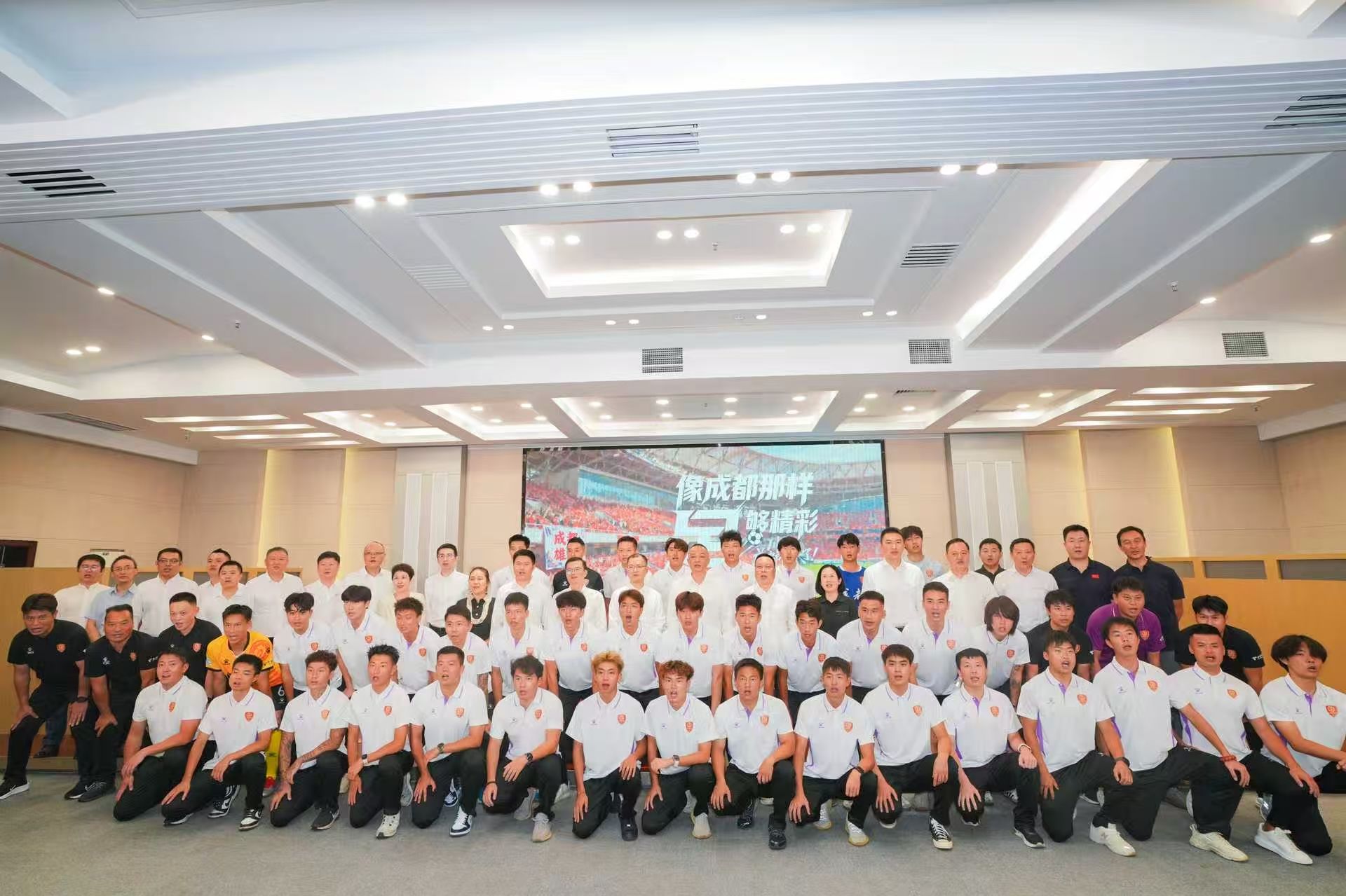 见面会上,成都代表队队员及教练员全员出席。荣誉主教练姚夏、主教练李嘉豪、队长刘超及球员代表蔡林枫、张长昊、吴骏文登台亮相。据了解,成都代表队已于9月2日正式组队,运动员、教练员大名单共50余人,球员覆盖警察、教师、银行职员、在校学生等10余个行业,平均年龄25岁左右,队伍以年轻化、本土化、技术化为特点。队伍中,有8人曾入选过国字号青少年代表队,65%球员有本土青训背景,80%队员曾常年参加成都城市足球联赛,参赛经验丰富。目前,队伍已进入集中训练阶段,针对性战术磨合与体能储备有序推进,力争以优异成绩为城市争光添彩。