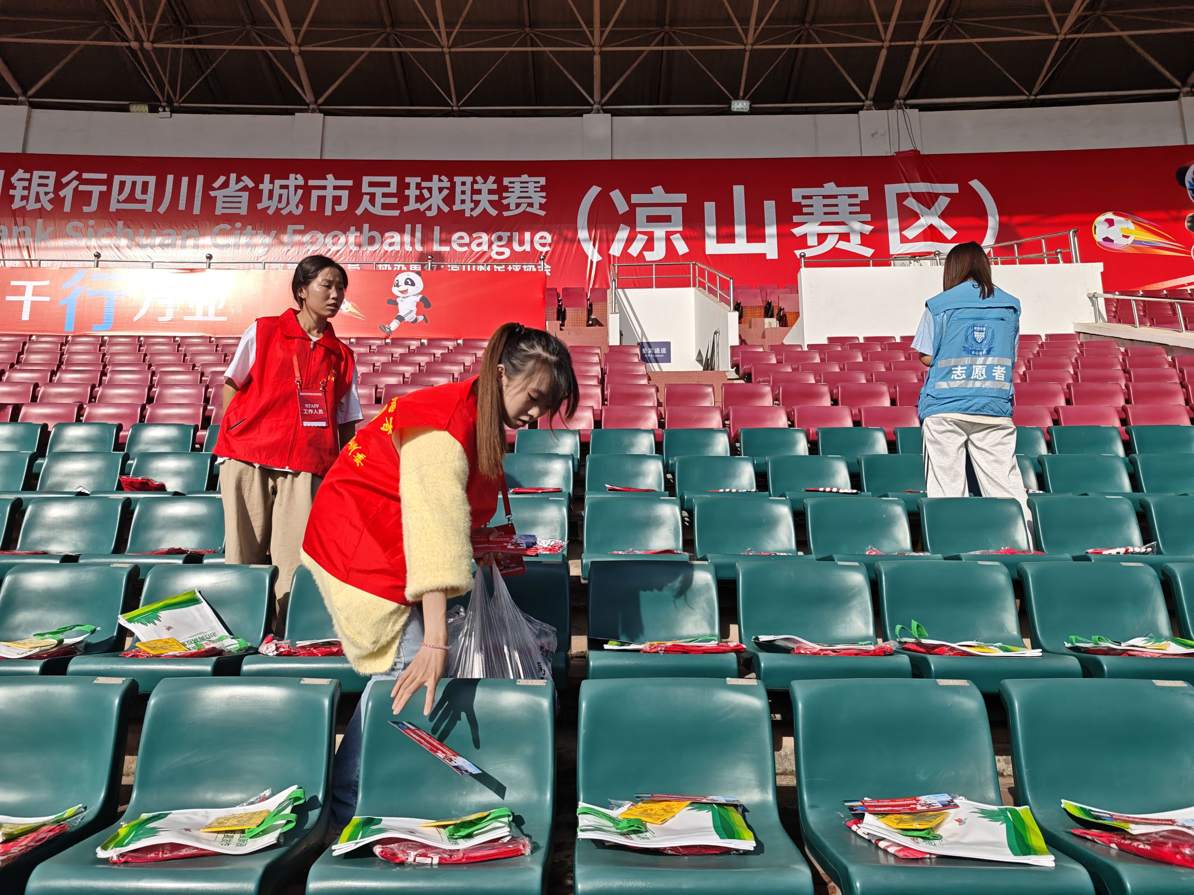 赛场内激战正酣,赛场外的保障队伍同样忙碌不停。体育场的过道里,总能看到“小火把”(凉山青年志愿者的专属昵称)在志愿值守的身影。“您好,请注意脚下,小心台阶。”一位志愿者一遍遍重复着这句话,口袋里揣着的服务手册上,密密麻麻记着应急通道位置和医疗点电话。“赛前我们专门培训了2天,就是要确保球迷有需要时,能第一时间回应、第一时间帮忙。”
