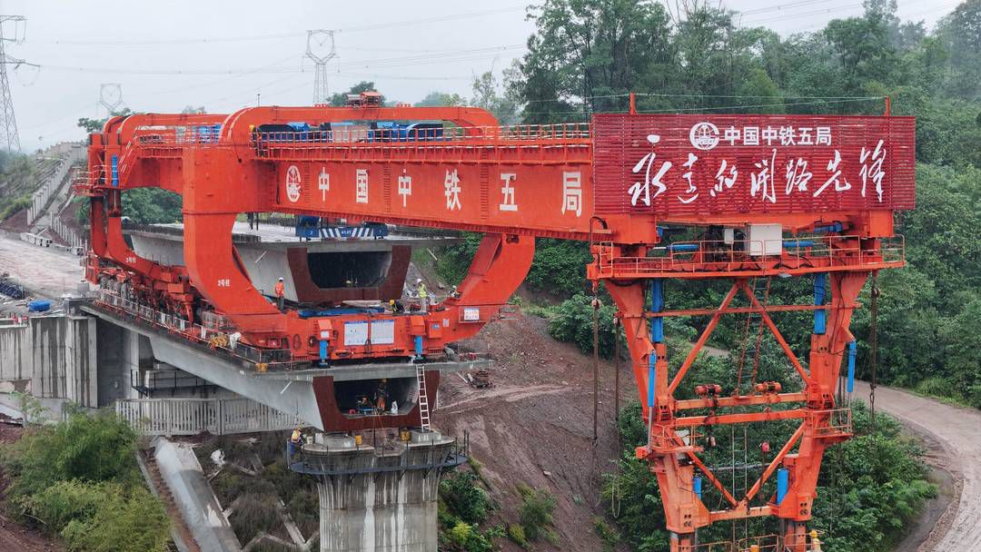 在渝昆高铁川滇段,中铁八局站前七标正开展架梁和收边收口工作。目前,标段内隧道、桥梁主体工程已全部完工,箱梁架设完成99%。项目经理邓磊介绍,下一步将全面展开无砟轨道施工,为按期通车打下坚实基础。
