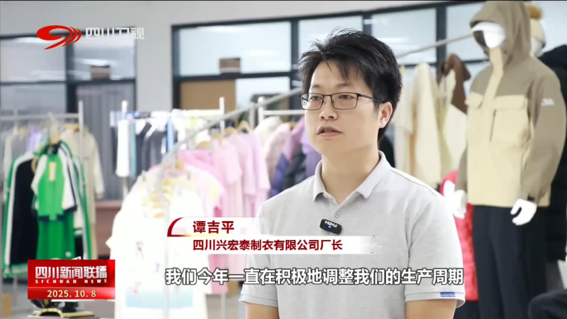 四川兴宏泰制衣有限公司厂长 谭吉平:我们今年一直在积极地调整我们的生产周期,走快返模式,坚持产品多样化,比如说现阶段我们在主打羽绒服、冲锋衣等产品的同时,也在持续地生产短袖、衬衫等海外需求的夏季产品。
