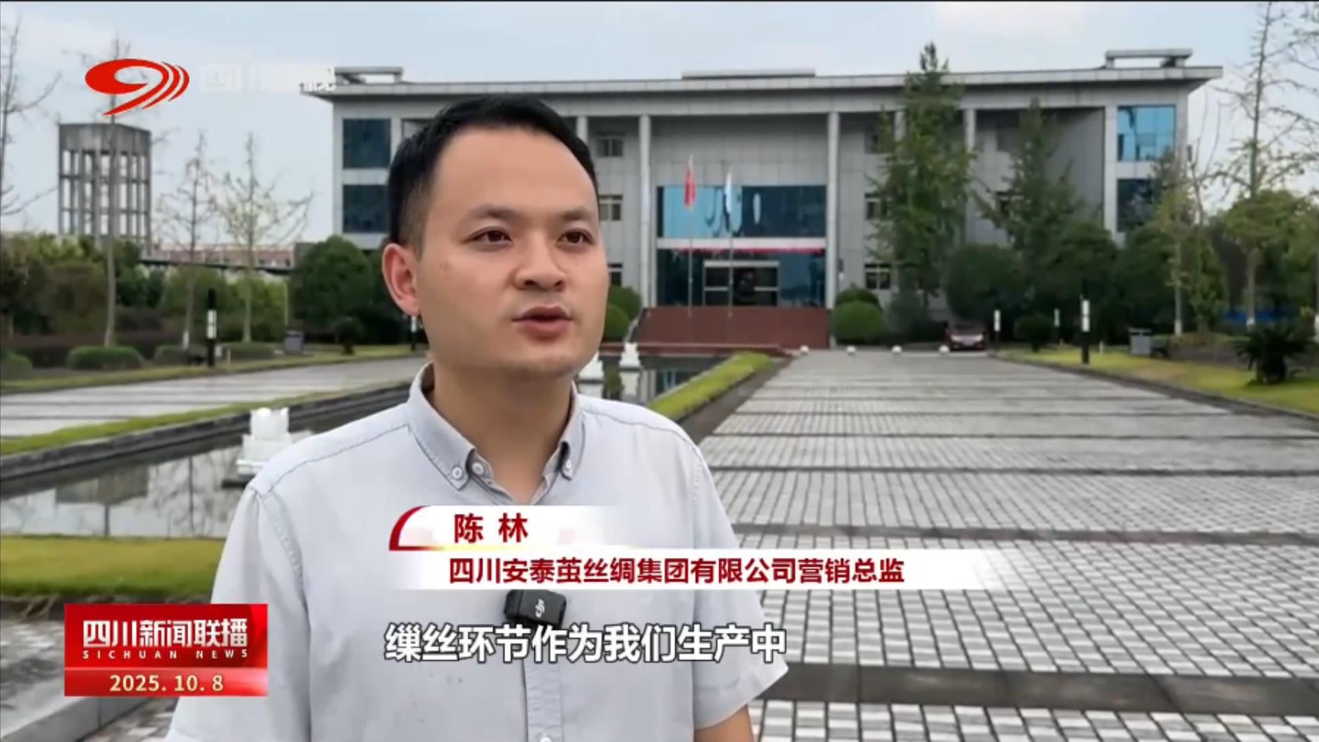 四川安泰茧丝绸集团有限公司营销总监 陈林:缫丝环节作为我们生产中对原材料起到关键决定的部分,近几年,我们就对所有的缫丝设备进行了升级,在去年全面完成。接下来,我们还将对煮茧等大型的生产设备进行升级,进一步提高我们的产能和品质。