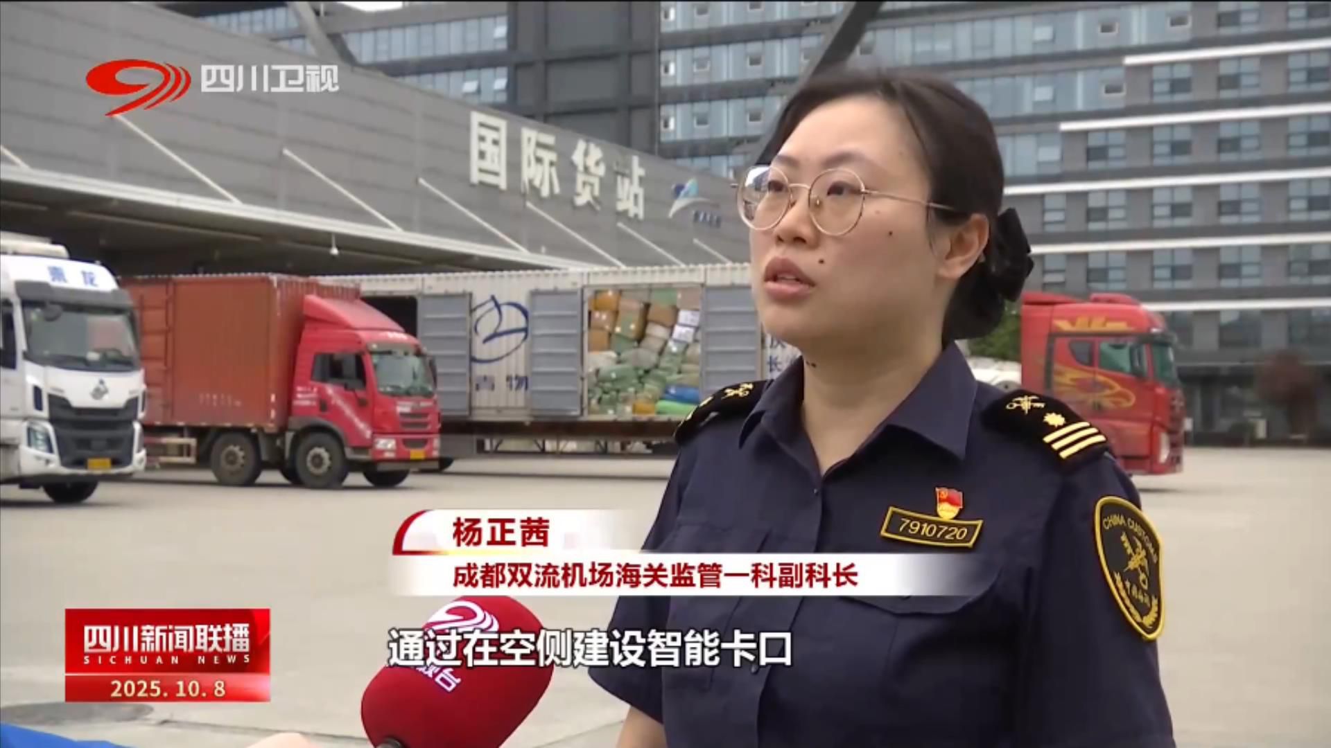 成都双流机场海关监管一科副科长 杨正茜:以“空侧内转”为例,通过在空侧建设智能卡口,优化升级海关智慧物流监管平台,打通国内、国际货站双向空侧的直通通道,可以缩短航空中转时间5小时左右。