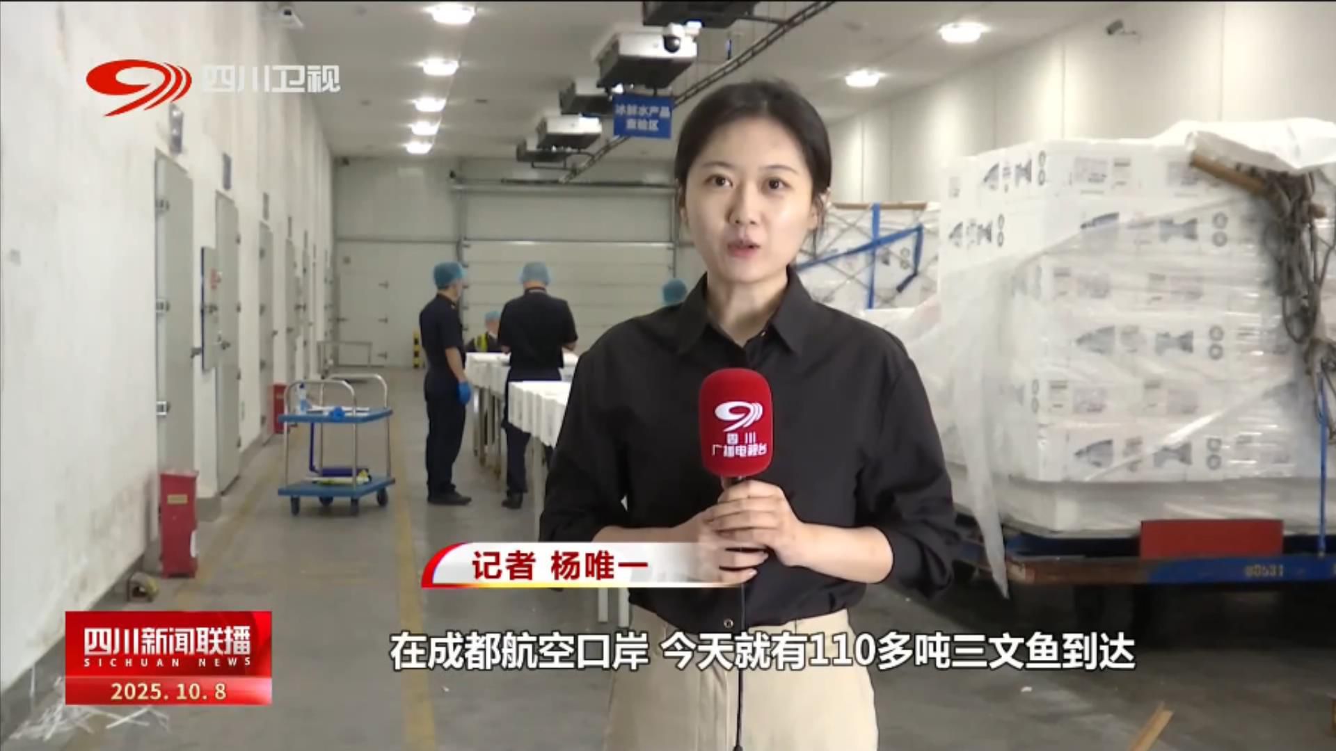 记者 杨唯一:国庆中秋“双节”,生鲜进口也迎来了高峰期。在成都航空口岸,今天就有110多吨三文鱼到达,也创下了三文鱼单日进口量的新高。现在,海关工作人员正在对这批三文鱼进行查验,通关放行之后,这批三文鱼将立即发往全国各地。