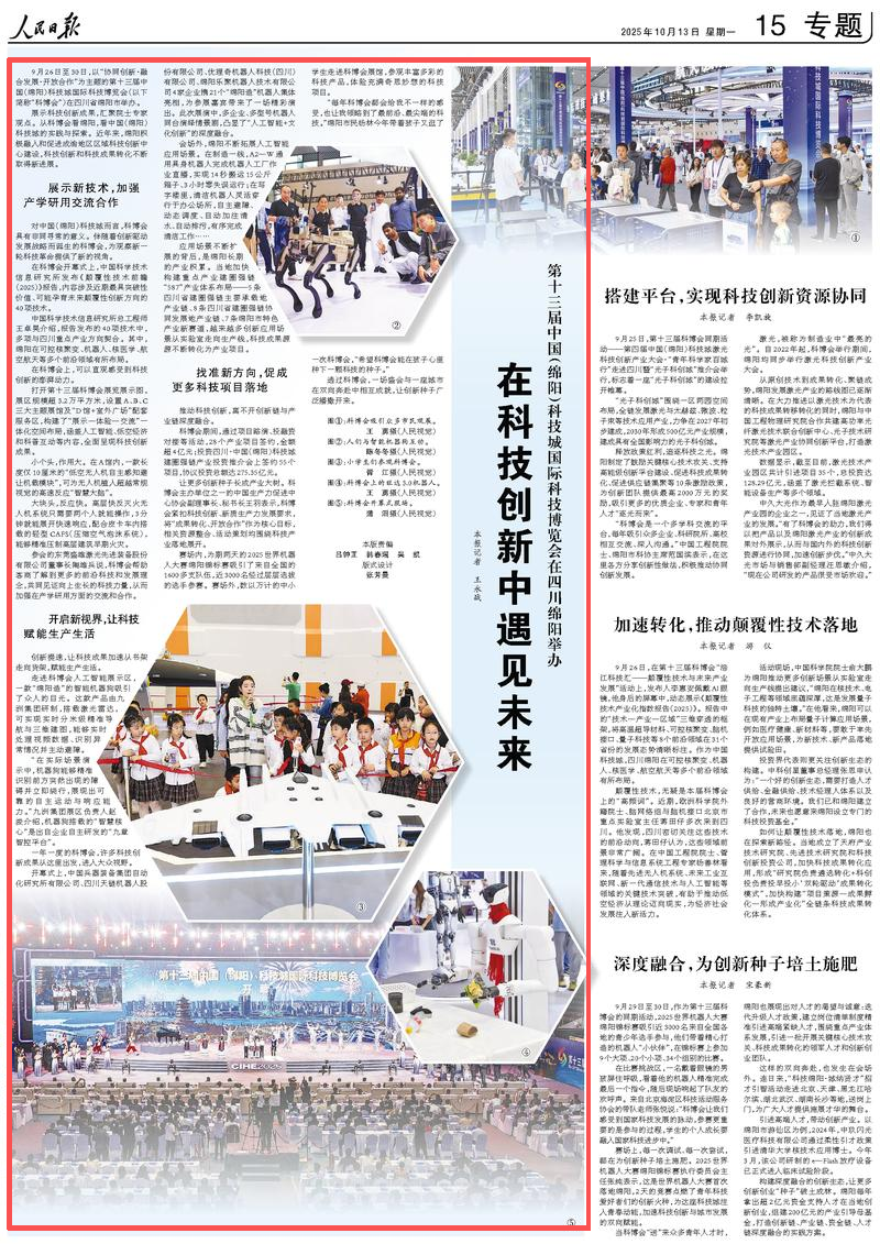 9月26日至30日,以“协同创新·融合发展·开放合作”为主题的第十三届中国(绵阳)科技城国际科技博览会(以下简称“科博会”)在四川省绵阳市举办。