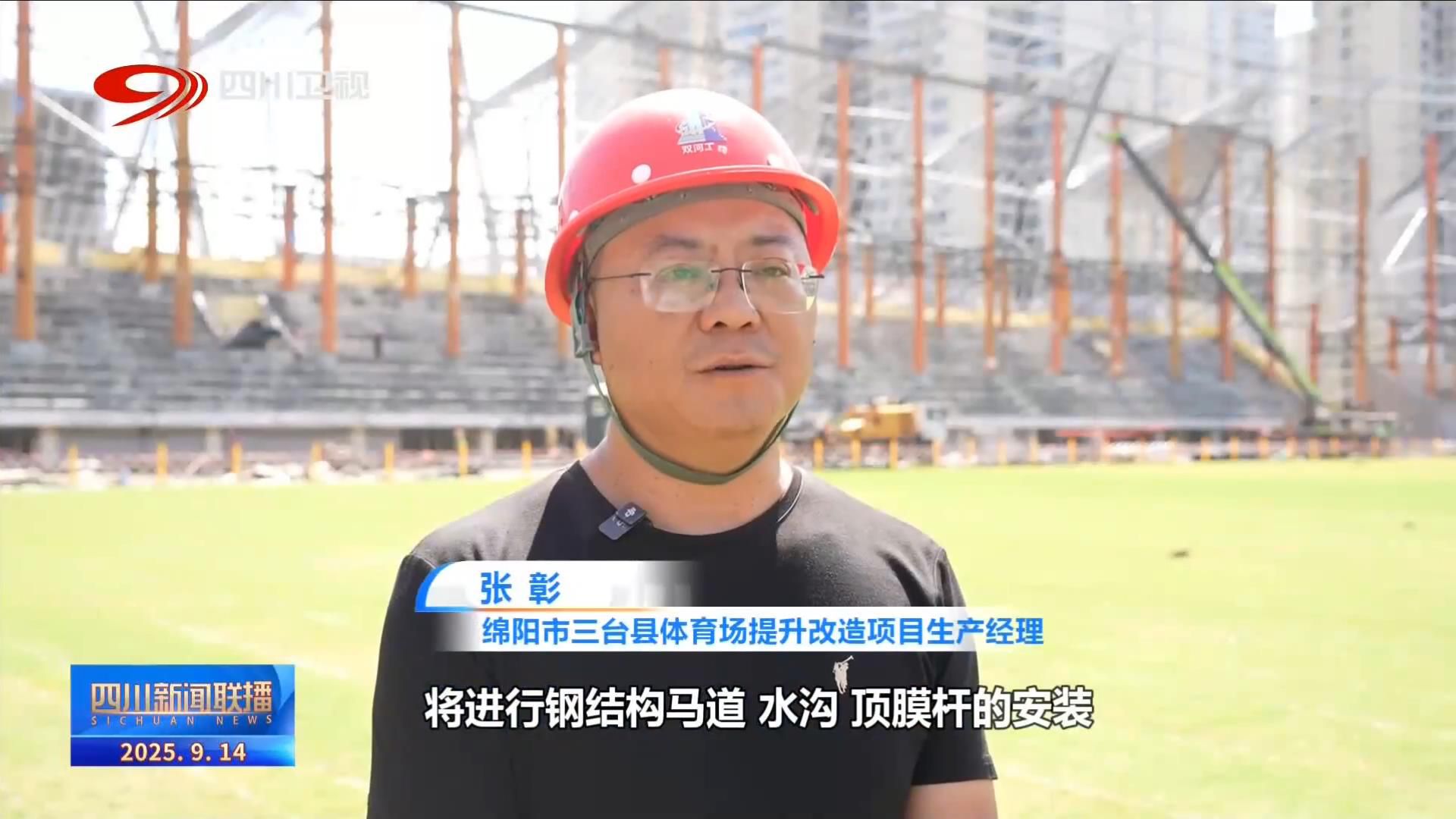 绵阳市三台县体育场提升改造项目生产经理 张彰:目前正在科学有序地进行钢结构支撑柱的拆除,将进行钢结构马道、水沟、顶膜杆的安装以及幕墙铝板、张拉膜的铺贴。
