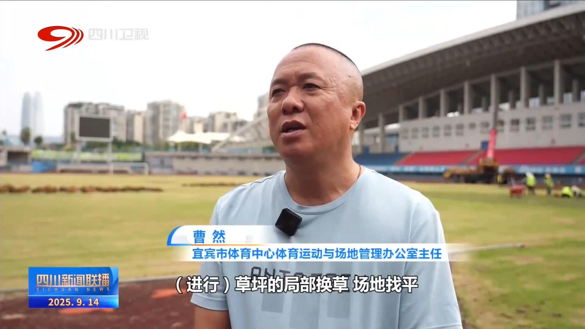 宜宾市体育中心体育运动与场地管理办公室主任 曹然:(进行)草坪的局部换草、场地找平,以及喷淋系统的安装和调试;塑胶跑道局部修补,整体的喷涂和划线;赛事功能用房的恢复,预计整个维修工程将于9月24日完全竣工。
