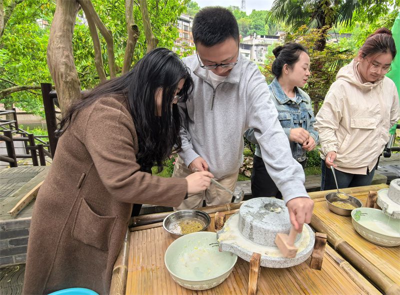 在研学体验方面,罗泉打造特色研学项目,游客可在古镇豆腐研学基地转动石磨研磨豆浆,体验从传统豆腐制作到创意美食DIY的全流程,深入了解豆腐文化;在文化载体建设上,结合罗泉古镇提档升级和盐神庙保护利用,围绕井盐文化与豆腐文化,打造非物质文化遗产互动体验中心,探索“党建+文旅+产业”新模式,推动豆腐产业与古镇旅游深度融合。